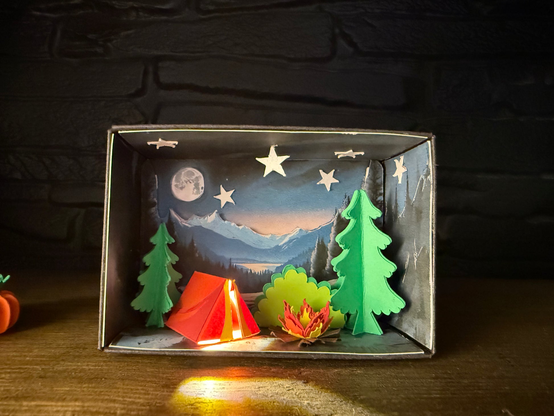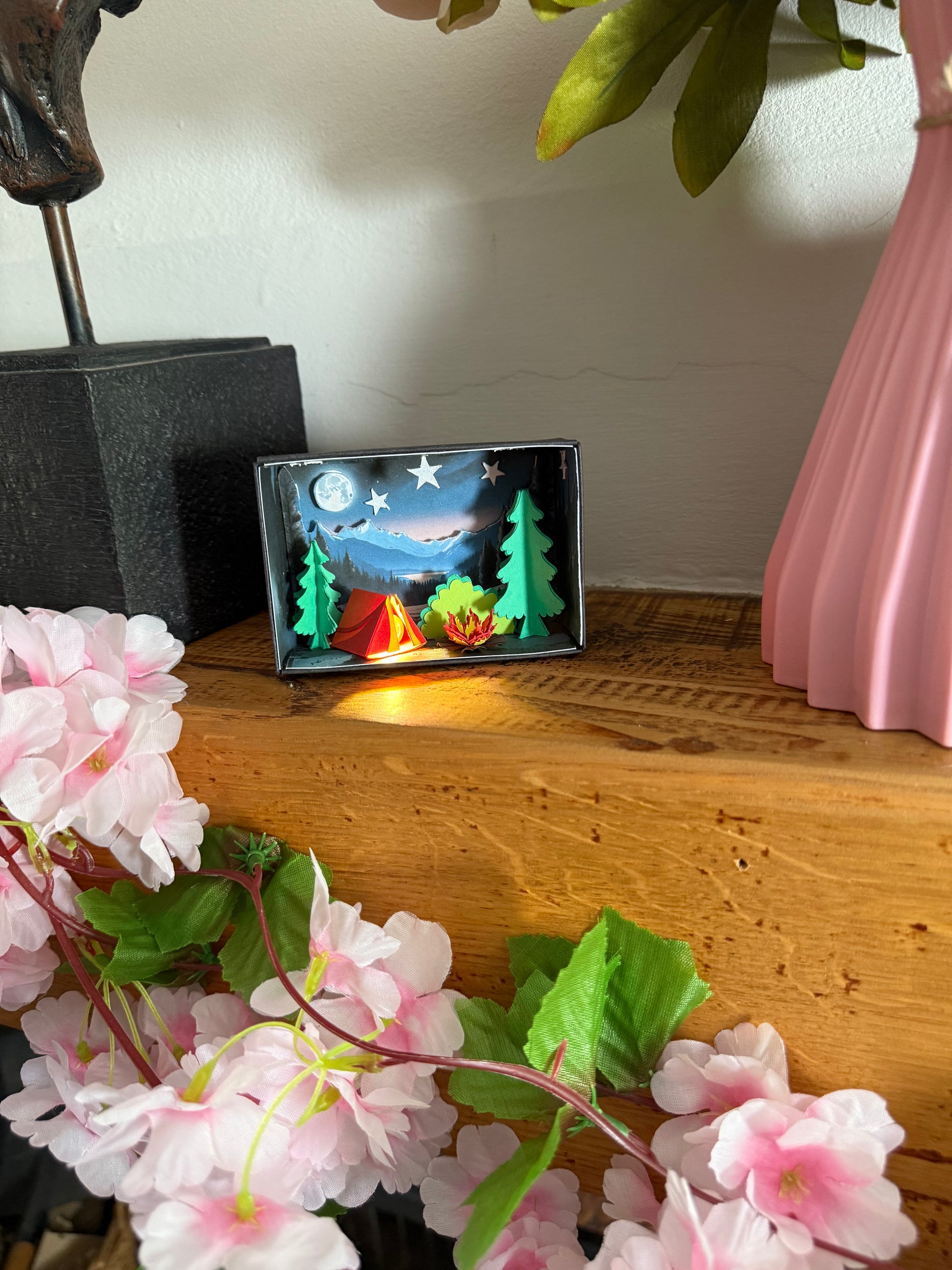 The Night Camping Little Paper Scene Kit invites you to escape into a tiny paper world of calm, creativity, and moonlit magic.